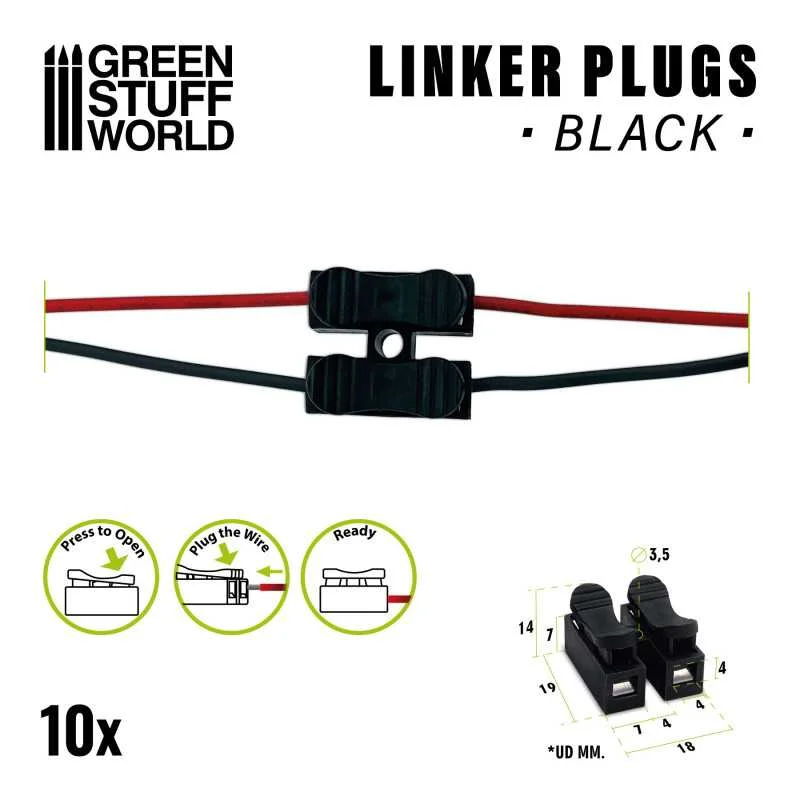 2pins Linker Plugs in packs are used to connect LED lights in dioramas or other scale models allowing the connection of LED lights in series. A pack of 10 would likely be enough to connect multiple LED lights in a diorama or other model.
