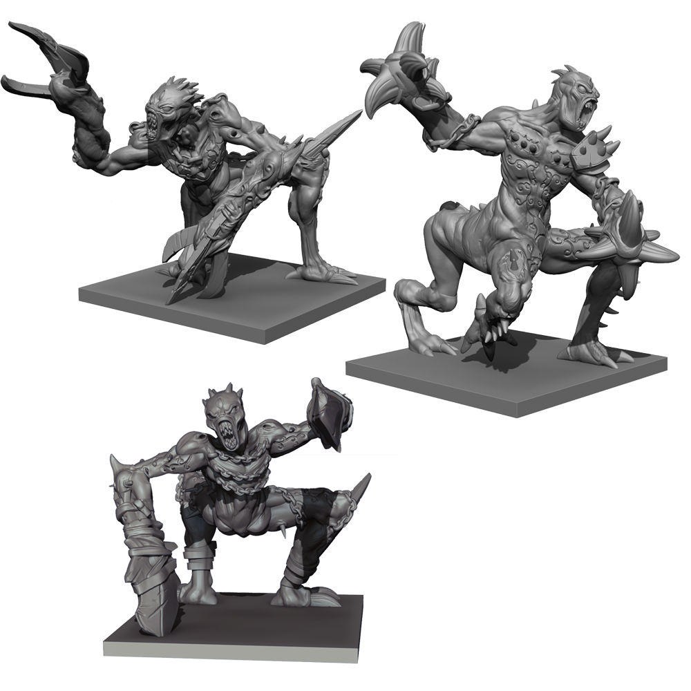 Huge hybrid creatures, grotesques are disgusting to behold and terrifying to face. These multi-limbed mutants are excessively violent, often tearing their opponents to pieces, leaving little more than chunks of flesh and bone and pools of blood. Contents: 3 resin models. Bases included.