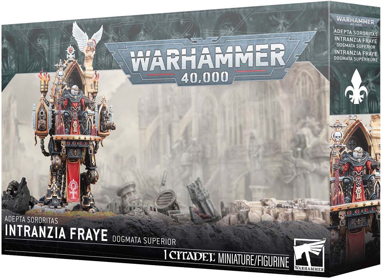 Intranzia Fraye, Dogmata Superior, is an uncompromising preacher of the Emperor’s will. From her imposing Throne of Blame, she judges her enemies and drives her Sisters to fanatical devotion in battle.