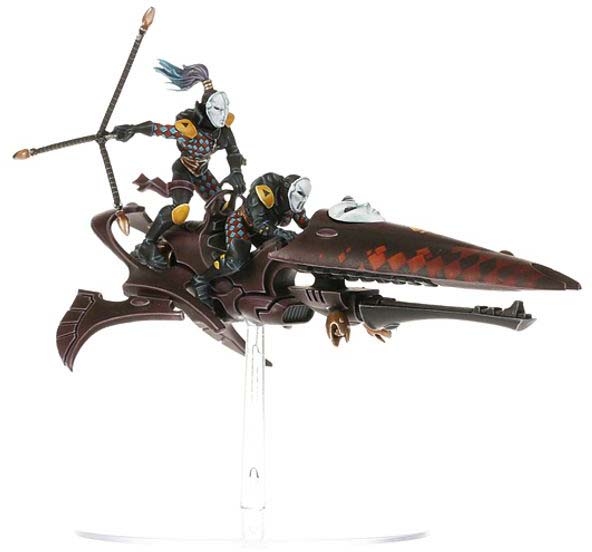Skyweavers soar through battle in a dazzling storm of colour and light, where reality and illusion blur together. These Harlequin jetbikes move with extreme speed and precision, making them difficult to hit and even harder to predict.