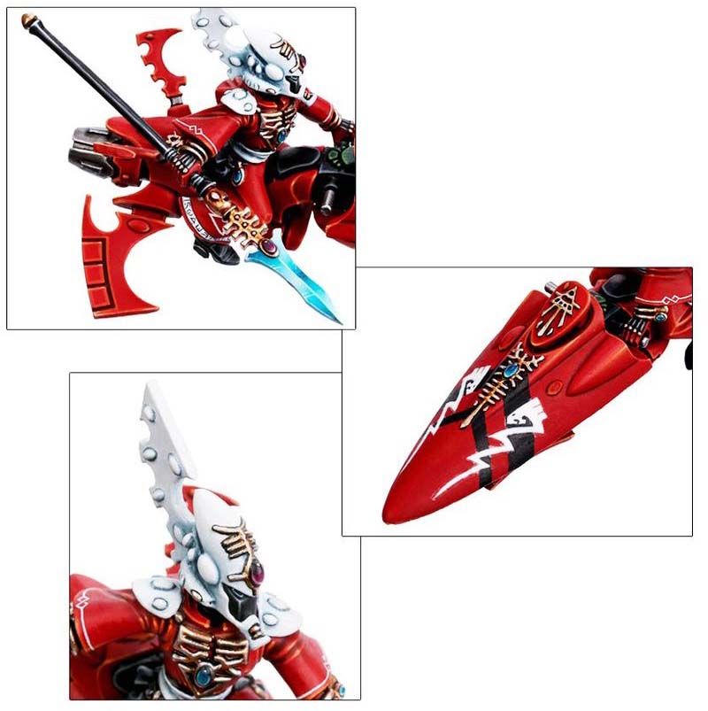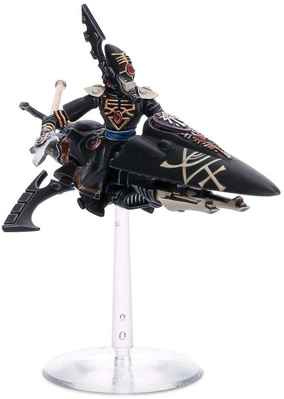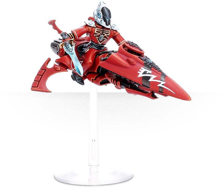 Fast jetbike-mounted Aeldari psyker combining mobility with devastating psychic power.