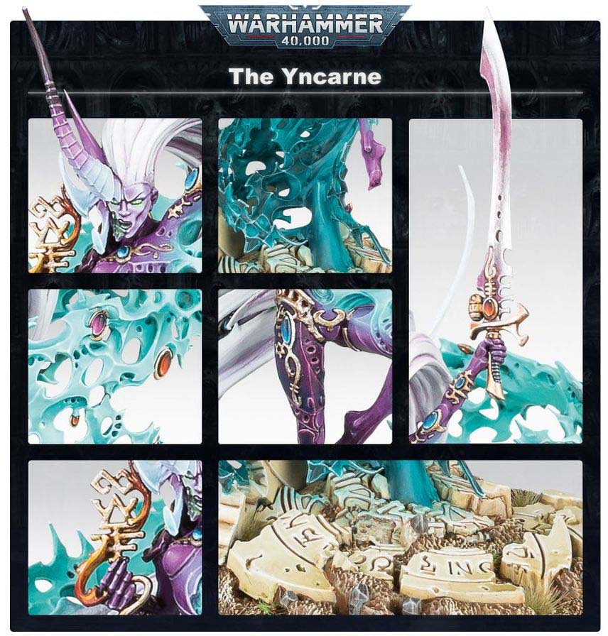 The Yncarne is a divine manifestation in your Aeldari army, born from death to annihilate enemies with overwhelming power.