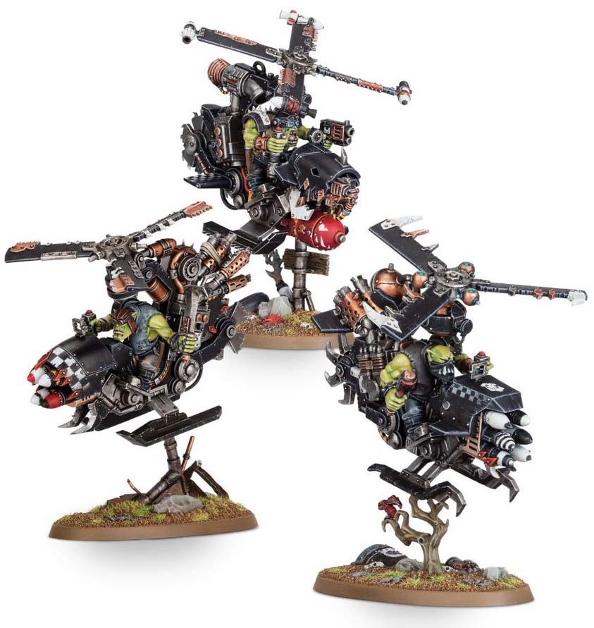 At the core of the force are Deffkoptas, fast attack units that pressure the enemy and seize key positions. A Deffkilla Wartrike leads the charge, driving the assault forward, while a Rukkatrukk Squigbuggy provides chaotic firepower with its living ammunition.