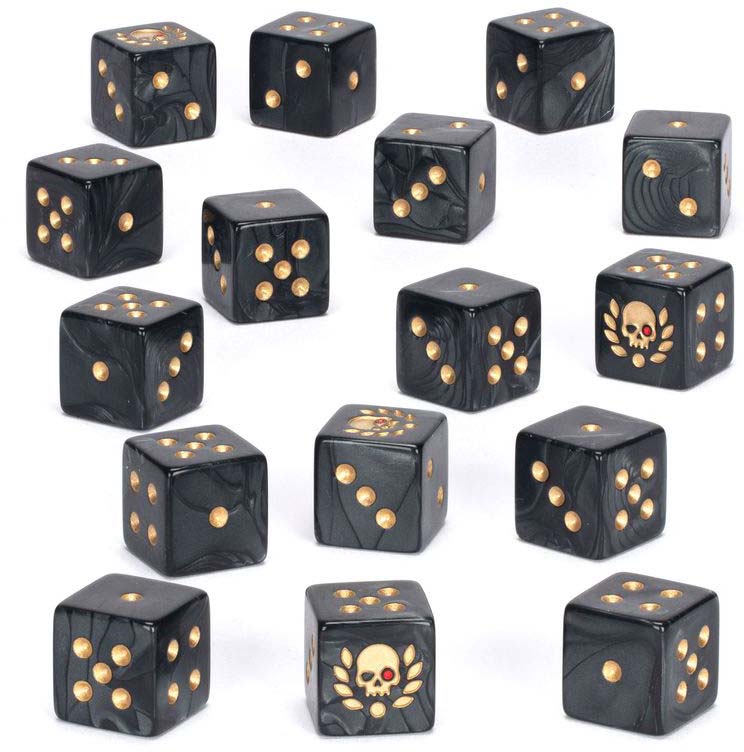 Cast in pearlised black acrylic with gold and metallic red ink markings, they offer a distinctive look that pairs perfectly with Astra Militarum armies. Each die is designed to be both functional and visually appealing, whether you're playing or collecting.