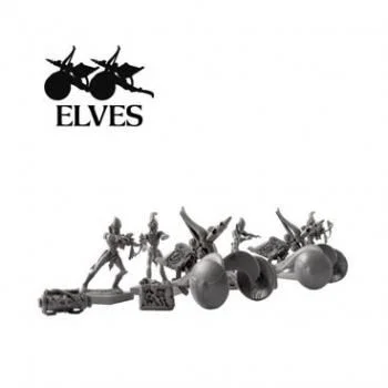 This box contains two finely detailed plastic Elven Warmachines with four crew figures. There are dead figures, extra heads, weapons options, 20mm bases and shield stickers. The figures can be collected, modelled, painted and used for gaming. THIS SET INCLUDES * 2 x Elves Bolt Thrower Crew Frame (4) * 2 x Elves Bolt Thrower Frame (2WM) * 2 x Elves Sticker Sheet * 1 x Elves Guide / Poster * 4 x bases * 1 x re usable carry case (35mm) * 2 x re usable protect foam Models supplied unassembled and unpainted.