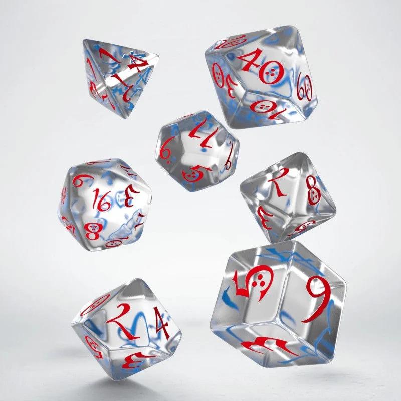 Colors play a very important role in our lives, whether we realize it or not. They have the ability to affect our emotions and moods in a way that few other things can. When you create your character, you should ask yourself what color suits your hero? What will be the best way to show his/her personality and tell something about it to other players. Maybe it is also worth choosing a special color for him or her. This non-verbal signal can be a great help to create a more immersive atmosphere during the game. A warrior mage should roll red and peaceful mystic green or maybe purple because he is a noble? Show your colors with our Classic Dice Sets. For example: Classic RPG Translucent & blue-red Dice Set (7) For all with hearts of ice and frosty looks. For those who like the purity of impeccable crystals. This is a very classic set. Clean and transparent, like water from the heart of the glacier.