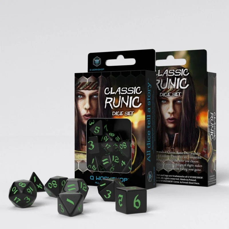 Classic Runic Black & Green Dice Set (7)