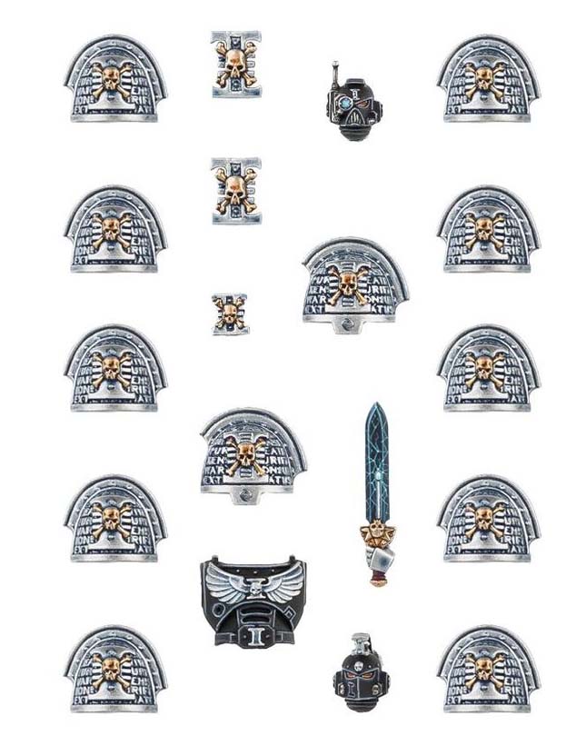 - 10x Deathwatch Space Marine shoulder pads (left arm)