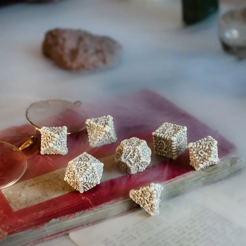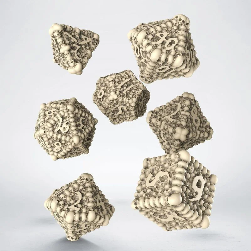 We heard you like bones. We like ‘em too, white, free of meaty sinew (we’re vegan-friendly, yess!), polished, and nicely carved. And skulls! Skulls are even better. Roundy and toothy, thicky and shiny, and spacy - to contain immensely dark forces for us to command! We mean, for you, yess… These artifacts harness the energies of the Underworld to do your bidding, yess. Remember: even with the tiniest piece of Dice Macabre you get to be one of us, fellow Necromancer, and you can challenge the Fate-being. The more exquisite the Dice Macabre is, the more powerful you become, so give them colors if you dare! Thanks to nearly-forgotten knowledge of the Underworld, we were able to call upon your collective energies to create this artifact. We piled the resin skulls together and shaped them into polyhedral dice. We sent our loyal skeletons so they could put digits on, washed them brownish, and made them amenable to give each Necromancer the tool he or she needs. And the details! Look into the empty eyes of each skull, see the darkness in there, expect it to stare back at you! No matter if you use it with an avatar of a dark hero, a great magus, a death cleric, a fallen paladin, a wild barbarian, or anything else… This artifact will be there to help you nonetheless, fellow Necromancer! Dice Macabre is capable of holding and harnessing the mystical powers, and we made them malleable to your will. It’s yours to command and may change the destiny to your liking, yess!