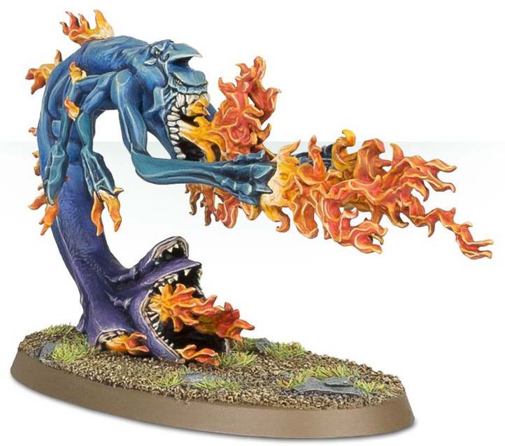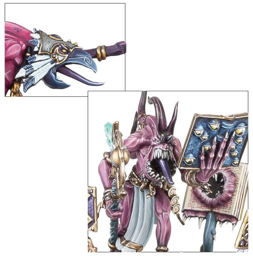 A Fateskimmer is a master of manipulation and destruction, casting firestorms from its floating platform. The chariot is pulled by Screamers that lash out at passing enemies, while arcane tomes and capering Blue Horrors enhance its chaotic presence.