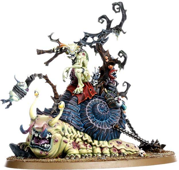 Horticulous Slimux, Nurgle’s own gardener, moves slowly but purposefully across the battlefield atop his slug-like steed, Mulch. With a practised eye for decay, he tends his pestilent flora while driving his rotting beasts into battle.