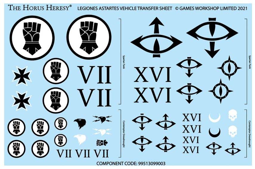 - 1x Legiones Astartes Vehicle transfer sheet (44 transfers)
