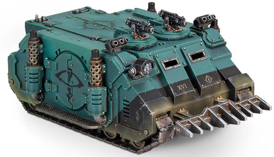 The Deimos Pattern variant is especially common among the Legiones Astartes and serves as the basis for many other war machines. In its role as a transport, it delivers troops to the front lines with both speed and protection.