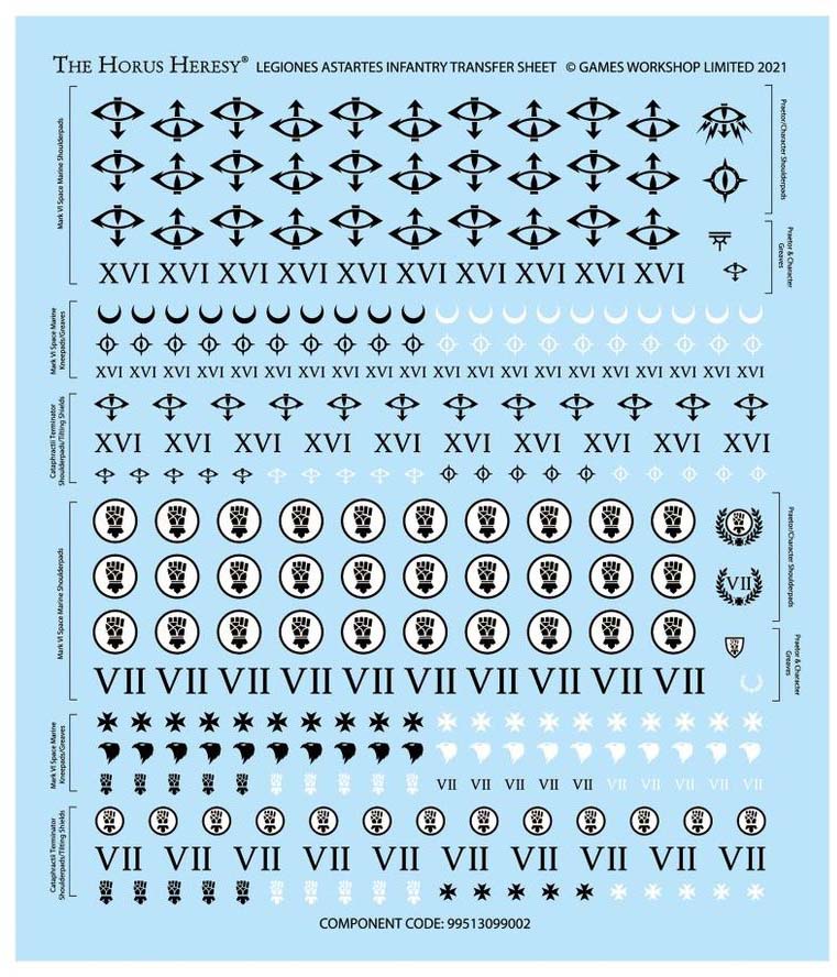 - 1x Legiones Astartes Infantry transfer sheet (293 transfers)