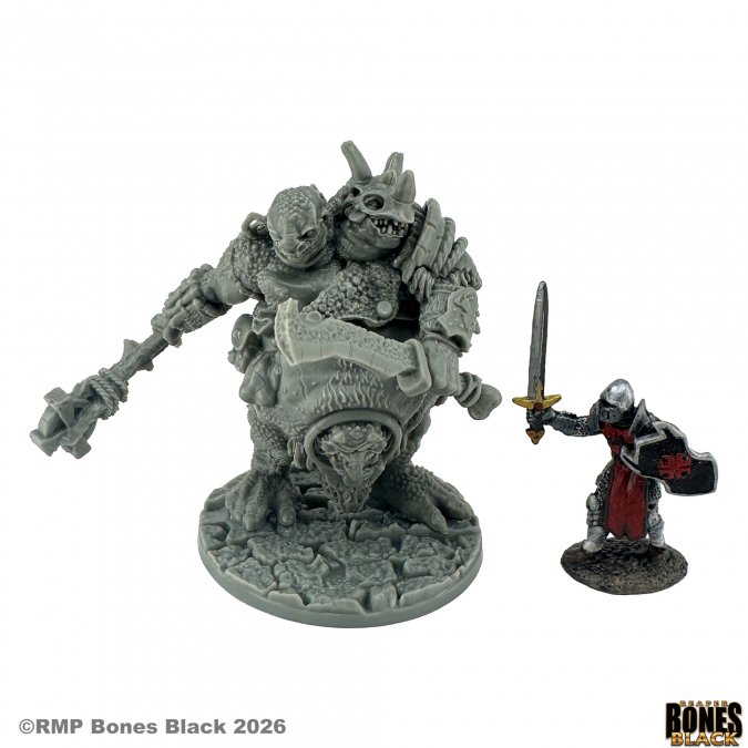Detailed two-headed troll miniature from Reaper, ideal for RPGs, tabletop games, and painting.