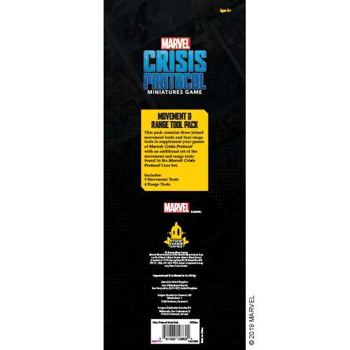 This pack contains three joined movement tools and four range tools to supplement your games of Marvel: Crisis Protocol with an additional set of the movement and range tools found in the Marvel: Crisis Protocol Core Set.