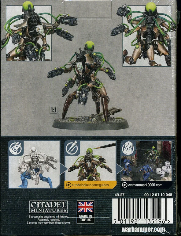 This kit builds a single Hexmark Destroyer, armed with six enmitic disintegrator pistols, and comes with a choice of two heads. The kit is supplied in 19 plastic components and one Citadel 50mm Round Base.