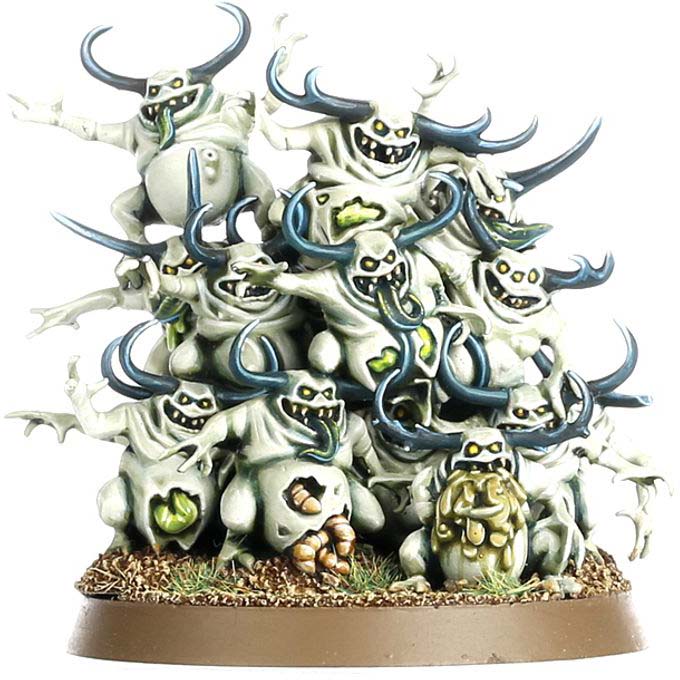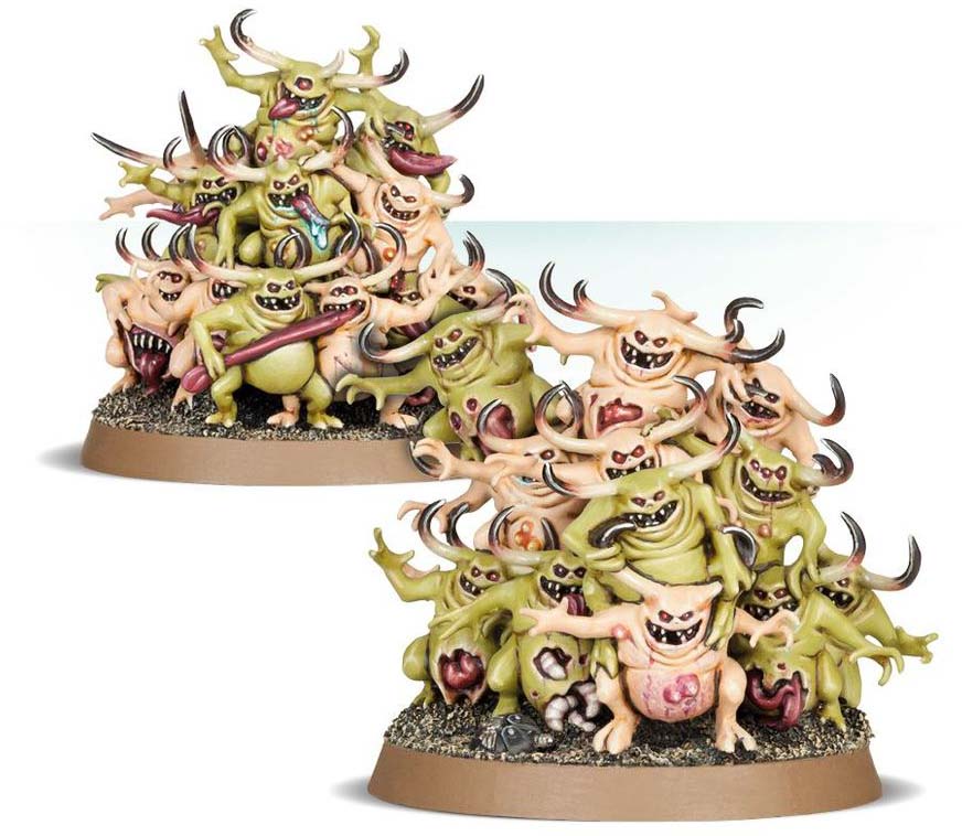 They move in dense swarms, each individual contributing to a writhing mass of chaos. Clinging, biting, and tearing, they leave behind a mess of decay and filth. To Nurgle, they are both tools and entertainment – and it shows.