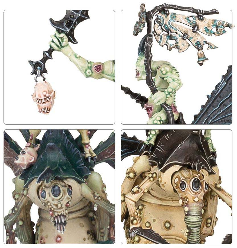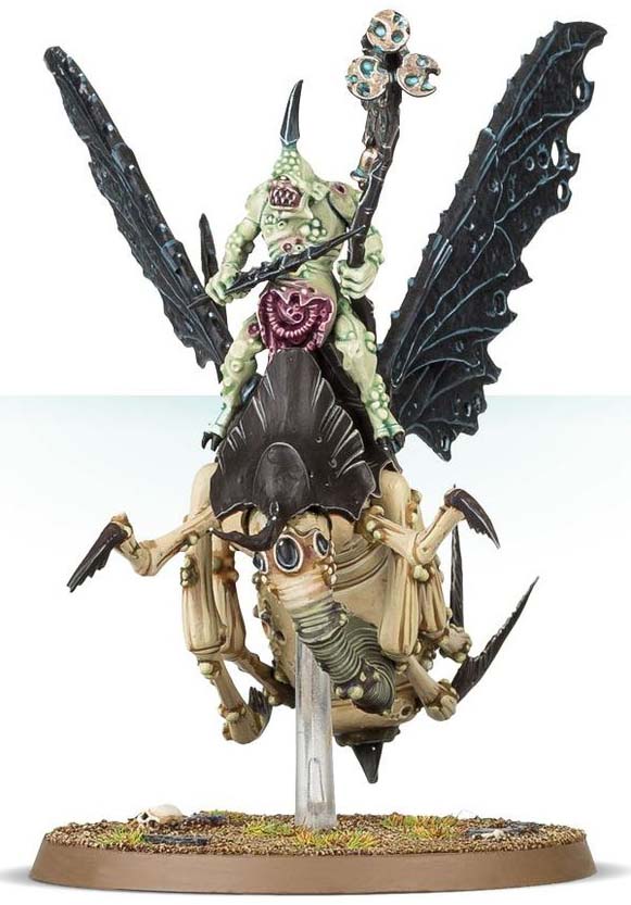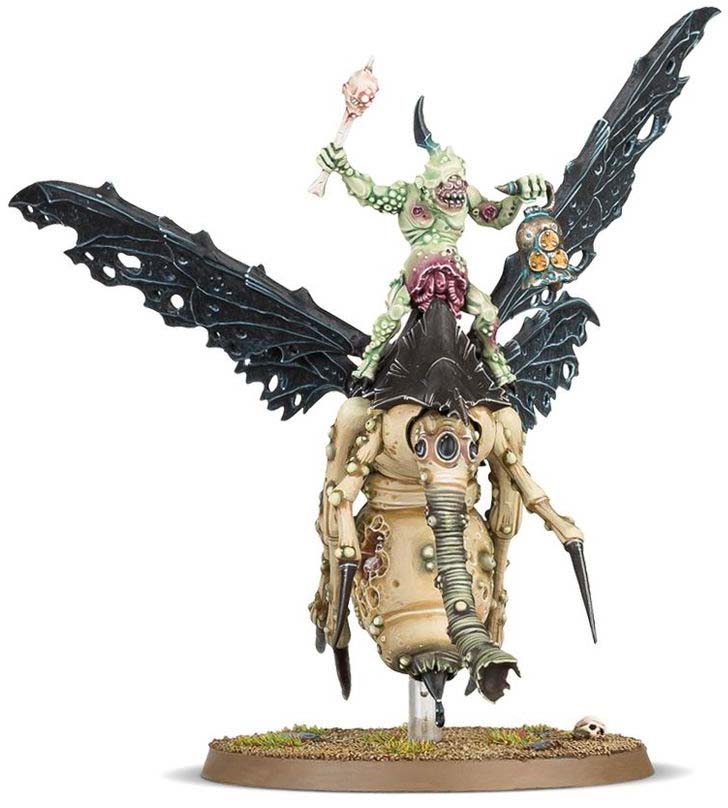 Plague Drones ride into battle atop monstrous rot flies, their buzzing wings carrying them straight into the enemy lines. These vile creatures tear and rip at their prey, impaling them on dripping proboscises or biting off heads with savage jaws.