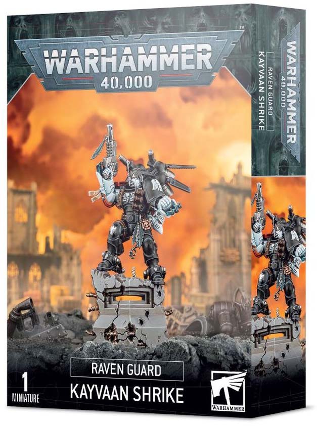Kayvaan Shrike is the foremost warrior of the Raven Guard and a master of ambush and rapid raids. He leads his forces in attacks where timing and positioning decide the outcome.