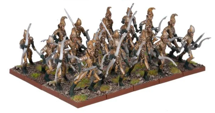 Elves are among Manticas finest woodsmen, with a reputation for moving silently through the forests of their homeland without disturbing a single branch. In times of war, their most skilled scouts will put this expertise to use, ranging ahead of the main force and bringing back reports that will be put to use in battle. When the time comes to face the enemy head-on they will form up into ordered units and support their companions with volleys of arrows, usually loosed from the cover of a forest or ruin. This set contains twenty finely detailed plastic Elven scouts armed with bows - enough to create a Scouts Regiment for a Kings of War Elf force. 20 Elf Scouts including: Plastic Elf scouts with bows 20mm plastic bases Comes with quivers and hand weapons These models are supplied unpainted, and some preparatory work may be required as well as assembly.