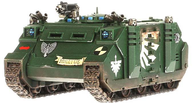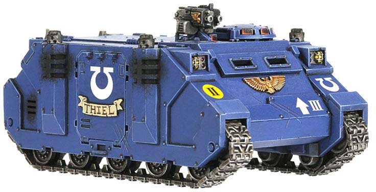 Rhinos are used to transport Space Marine infantry quickly across the battlefield.