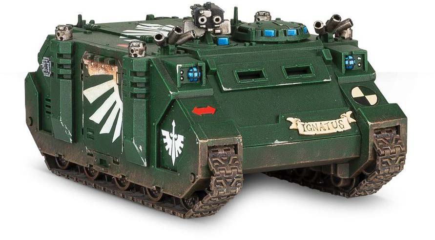 Fast, rugged, and reliable, the Rhino allows Space Marine forces to reach the heart of battle quickly. Its durable armour and proven design ensure that it can deliver its passengers safely through enemy fire and into the thick of combat.