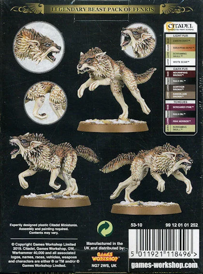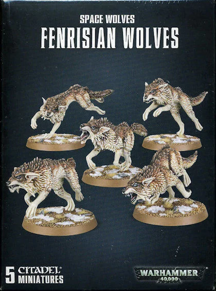 The set includes 5 multipart plastic Fenrisian Wolves, with interchangeable heads for added variety. Each model is supplied with a Citadel 40mm Round Base.
