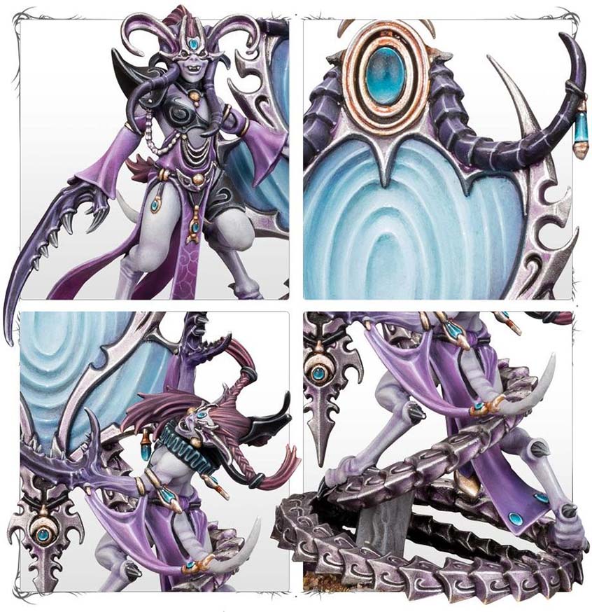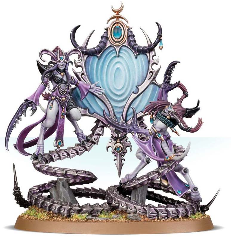 The Contorted Epitome writhes across the battlefield on lashing metallic tentacles, guided by its Daemonette attendants. Its mirrored surface reflects the enemy’s darkest desires and deepest fears, turning them into a weapon.