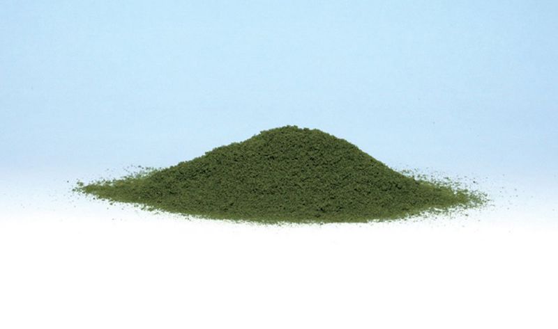 The material consists of finely ground particles that can be easily glued in place using PVA glue or dedicated scenic adhesives such as Scenic Cement. It can also be fixed by spraying adhesive over the surface for added durability. The small particle size makes it ideal for simulating short grass, moss-like textures, and natural ground cover.