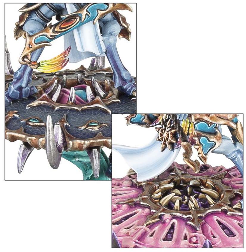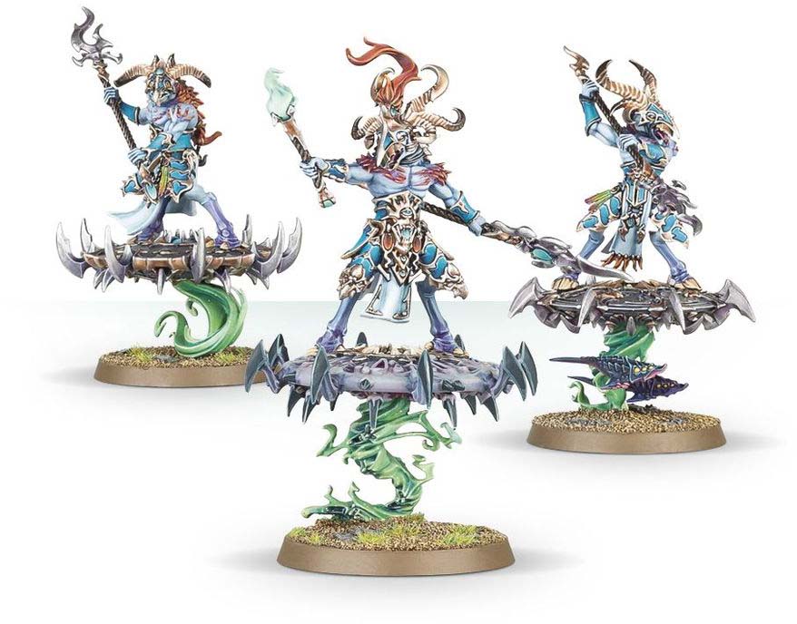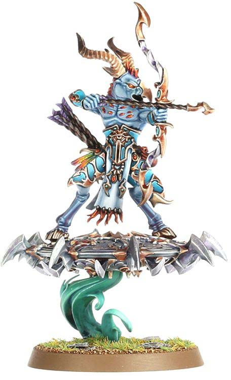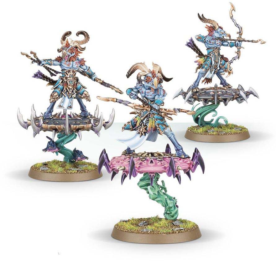 Tzaangor Enlightened are blessed among their mutated kind – through their connection to Tzeentch, they can glimpse the strands of fate and hunt those destined to fall. Riding atop daemonic Discs, they sweep across the battlefield in search of knowledge and prey.