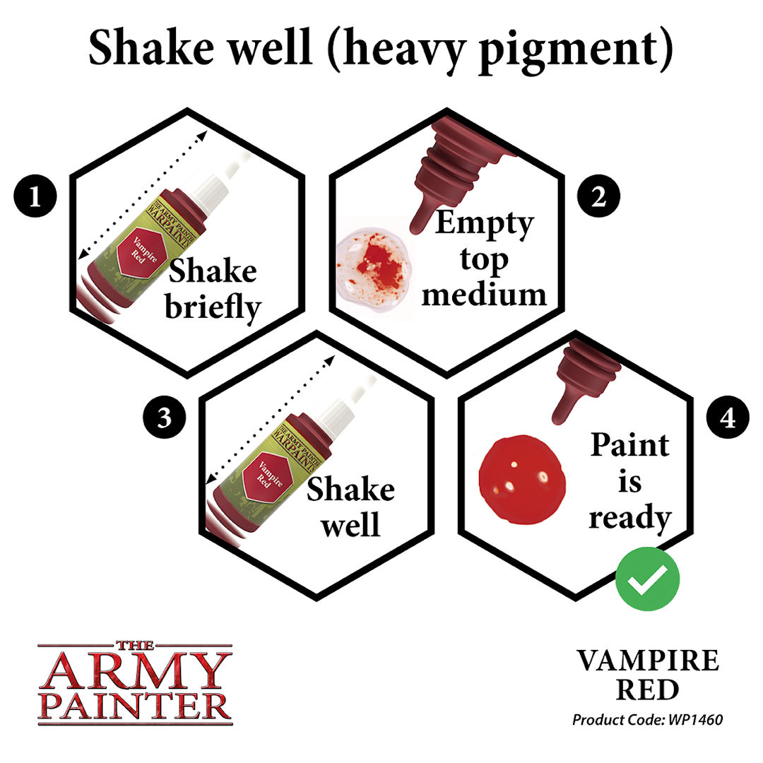 PAINT, SPRAY AND BRUSHES ARMYPAINTER Armypainter Warpaints Vampire Red (18 ml) Watch this product and we will notify you once it is back in stock. The product is now watched We will notify you once the product is back in stock again. E-mail Watch this product Your personal information is processed in accordance with our privacy policy. Vampire Red (18 ml) Quick deliveries Free shipping over 300 EUR Always 30 days return policy MINIATURE GAMES BOARDGAMES CARD GAMES ROLE PLAYING GAMES PUZZLES PAINT, SPRAY AND BRUSHES ACCESSORIES DICE TERRAIN AND DIORAMAS SALES AND DISCOUNTED PRODUCTS Sweden English SEK
