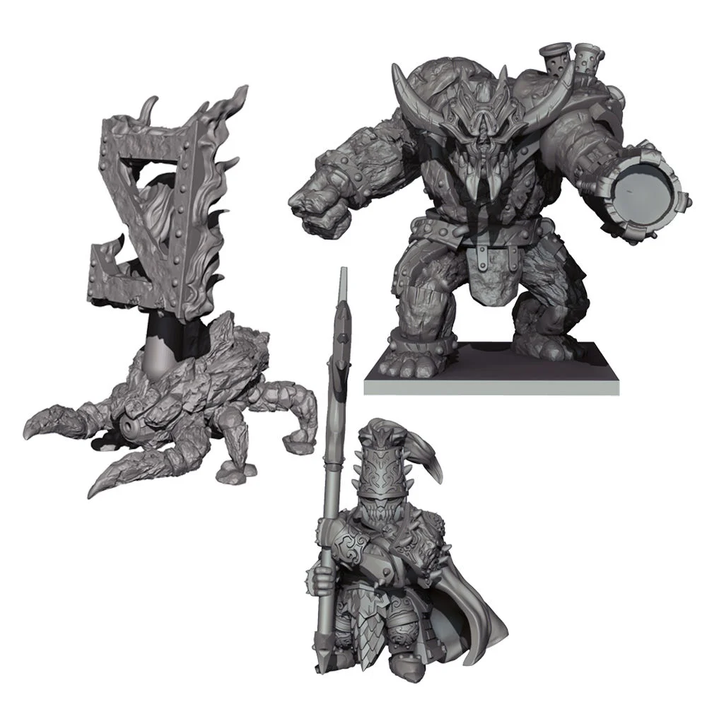 The true power of the Abyssal Dwarfs stems from the Iron-Casters. These cruel sorcerers are adept at using the fell powers of the Abyss to bend flash and metal to their will, creating powerful constructs to horrific mutants. These debased beings are forced into battle on their masters’ behalf. Contents: -1 resin Charnox -1 resin hexcaster -1 resin immortal guardian. -Bases and vanguard cards.