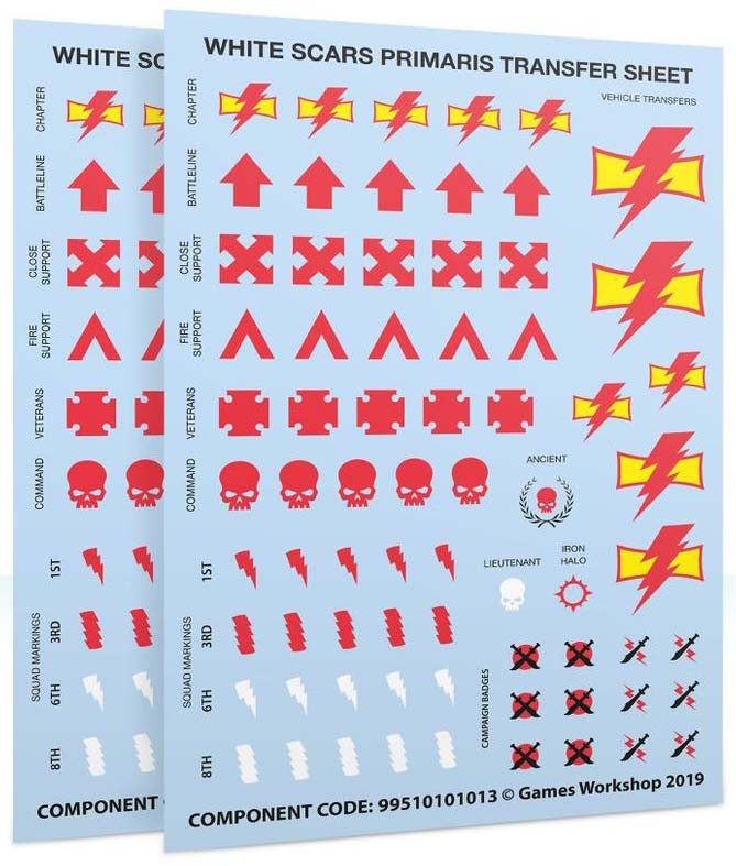 White Scars Primaris Upgrade Kit – upgrade components and transfers with correct Chapter markings.