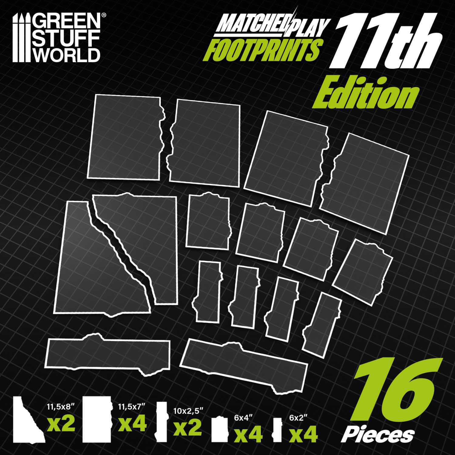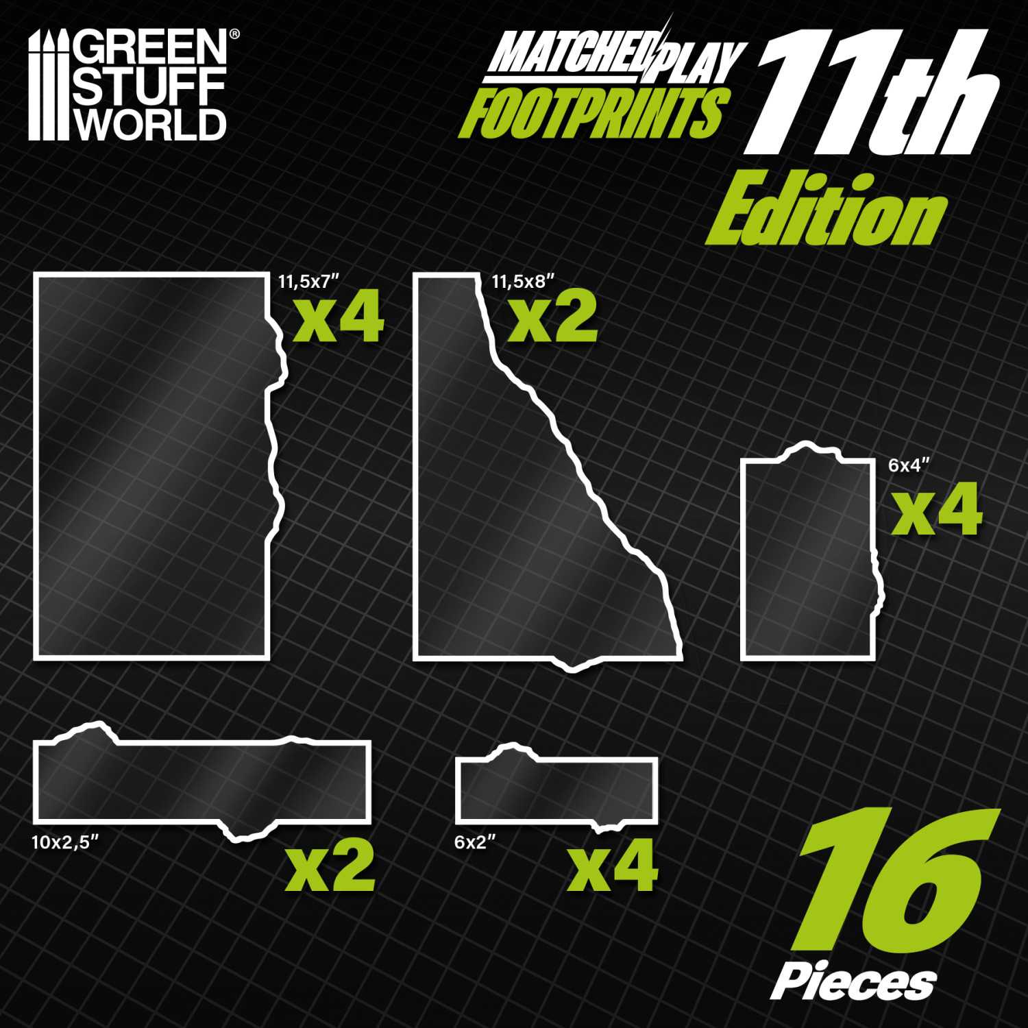 Mallarna är tillverkade i transparent, flexibel och tålig plast som låter din spelmatta synas igenom utan att störa helhetsintrycket. Till skillnad från MDF eller neopren skapar de inga höga upphöjda kanter som påverkar modellplacering eller rörelse. De vita markerade kanterna gör det enkelt att se exakt var terrängzonen börjar och slutar, vilket minskar diskussioner och snabbar upp spelet – särskilt i matcher där terräng och uppdrag är tätt sammankopplade.