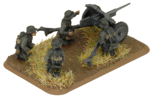includes four plastic 3.7cm guns, two plastic gun crew sprues and three Unit cards