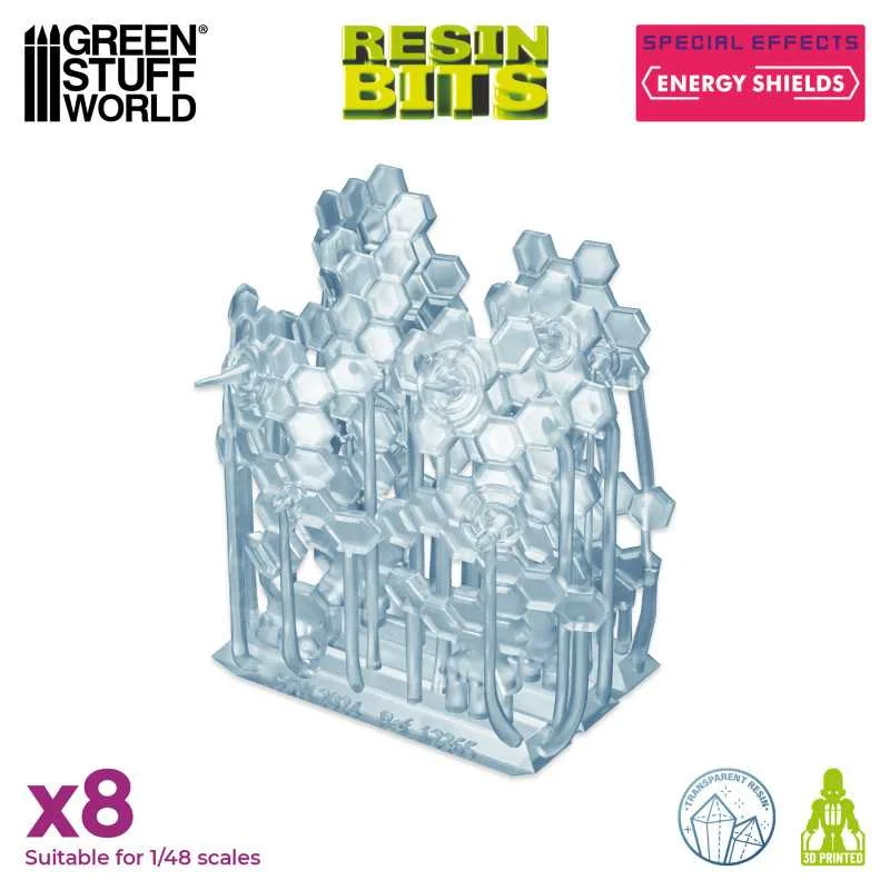 These products are delivered unpainted and are ideal for 28-35-54mm miniatures (1:48 - 1:35 scale). Each set includes 8 x Clear Energy Shields.