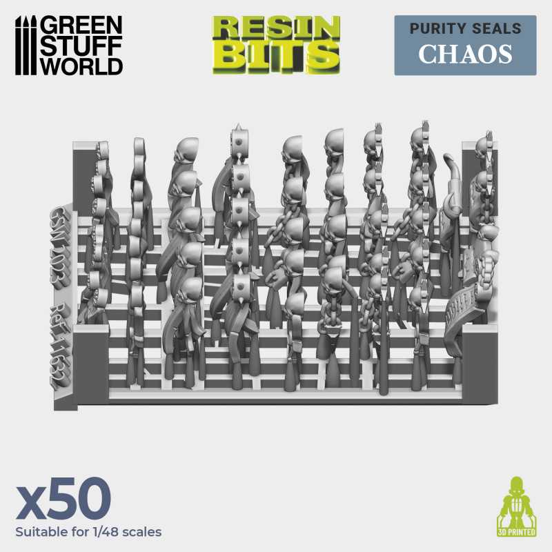 Purity seals are a popular decorative element in Warhammer 40K modeling carefully designed to add a sense of authenticity and character to miniatures. These seals are small scrolls or ribbons that attach to the armor or weapons of a miniature and are often adorned with various symbols and inscriptions. They come in different shapes and sizes to suit all needs and scales. Ideal for dioramas and scenery. This product comes unpainted and is perfect for 1:48. Contains: x50 purity seals