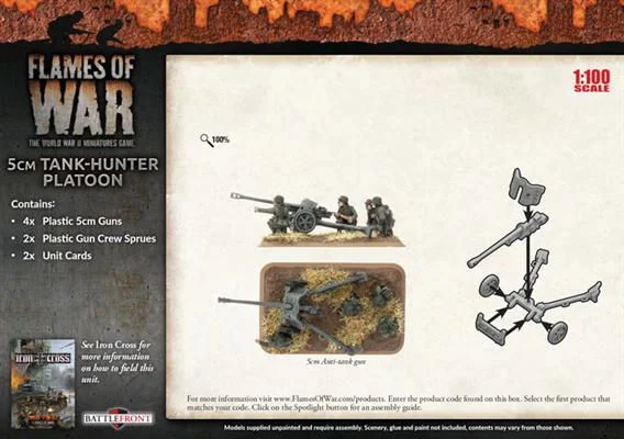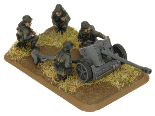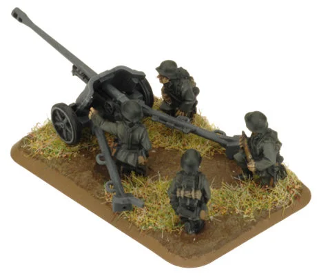 includes four Plastic 5cm Guns, two Plastic Gun Crew Sprues and two Unit cards.