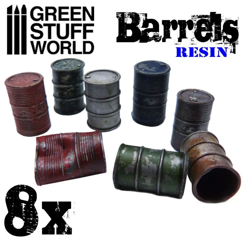 GSW's high quality resin replications of metal oil barrels. Designed to fit most standard wargames such as Infinity, Warhammer 40K and Bolt Action, these barrels will provide additional coverage and detail to your battles.