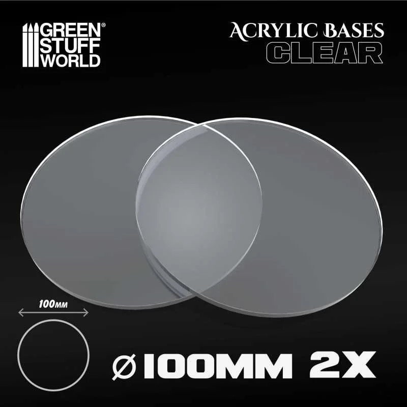 Top quality Acrylic bases for mounting wargames figures. Shape: Round Thickness: 3mm Color: Clear Bases: 2 per pack