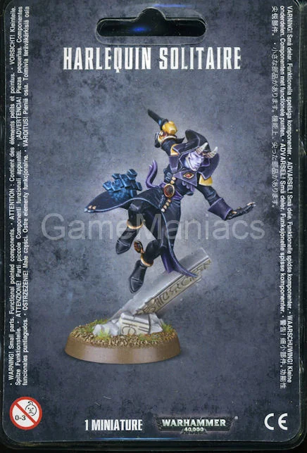 This 9-piece plastic kit makes one Harlequin Solitaire armed with a harlequin’s kiss and harlequin’s caress. Also included is the option to add a holo-field to the Solitaire’s jacket. The model is supplied with a 25mm round base.