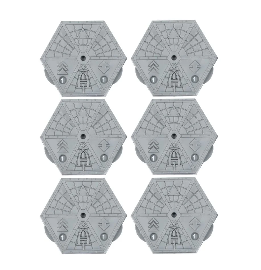This pack contains six Aeronautica Imperialis Bases. These can be used to adapt the following Legions Imperialis miniatures for Aeronautica Imperialis: – Solar Auxilia Thunderbolt Fighters – Solar Auxilia Marauder Bombers – Solar Auxilia Marauder Destroyers – Solar Auxilia Lightning Fighters – Solar Auxilia Avenger Strike Fighters – Adeptus Astartes Storm Eagle Squadron – Adeptus Astartes Xiphon Interceptor Squadron – Adeptus Astartes Fire Raptor Squadron – Adeptus Astartes Thunderhawk Gunship – Solar Auxilia Marauder Pathfinder Colossus – Solar Auxilia Marauder Colossus Squadron – Solar Auxilia Arvus Lighters When using the miniatures listed above in games of Aeronautica Imperialis you may choose to use the faction name Imperial Navy instead of Solar Auxilia