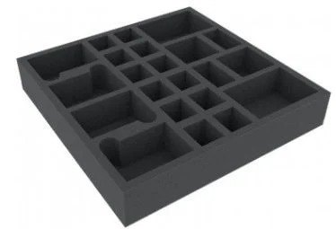 Foam tray with 22 slots for many original board game boxes. The 22 different slots own yourself for everything imaginable game material.