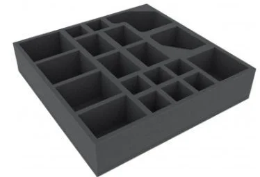 Foam tray with 19 slots for many original boardgame boxes. The 19 different slot own yourself for everything imaginable game material.