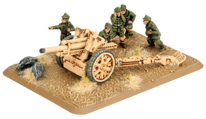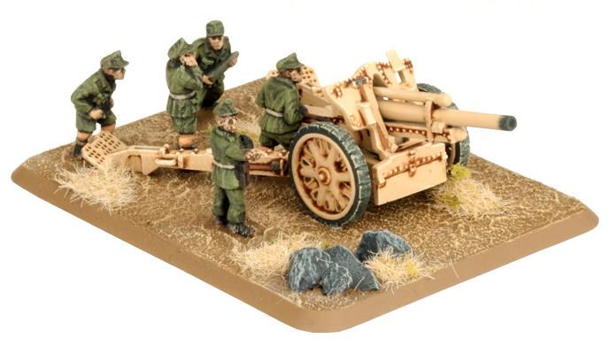 includes four plastic 10.5cm guns, four plastic Gun Crew sprues, four large six-hole bases, one plastic base plug sprue and two Unit cards.