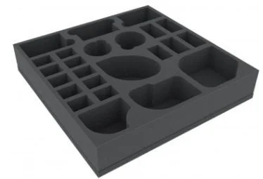 Foam tray with 24 slots for many original boardgame boxes. The 24 different slot own yourself for everything imaginable game material.