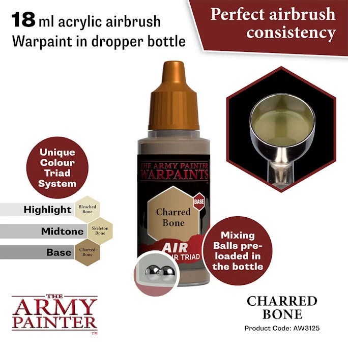 The Warpaints Air paints are of unparalleled quality due to the nature of the high coverage offered by the specially chosen and ultra-filtered vibrant pigments. This, combined with a very stable and matchless resin solution, is paint science at its best! To make things easier Warpaints Air comes pre-loaded with two steel Mixing Balls.