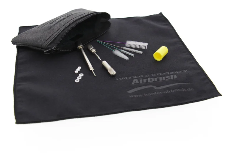 Harder & Steenbeck service kit includes all the tools you need for the successful maintenance of your airbrushes. It's housed in a leather carry case which contains a microfibre cloth, a nozzle cleaning needle/reamer, a backward flushing nozzle cap, four cleaning brushes and a screwdriver for the removal of the packing gland, plus nozzle and needle seals 3 pieces each. Suitable for all Harder and Steenbeck Infinity, Evolution, Grafo and Ultra. The Harder & Steenbeck Airbrush Service Kit includes: Microfibre Cloth - Wipe down your airbrush body and needle Nozzle Cleaning Needle/Reamer - Suitable for nozzle sizes from 0.2mm to 0.6mm (117403) Plastic Nozzle Cap - For backward flush cleaning (127990) Four Cleaning Brushes - To clean the tiniest openings and crevices of your airbrush (870041) Screwdriver - For removing the packing gland/packing screw (123933) Three PTFE Replacement Nozzle Washers (123180) Three Replacement Needle Seals (123450)