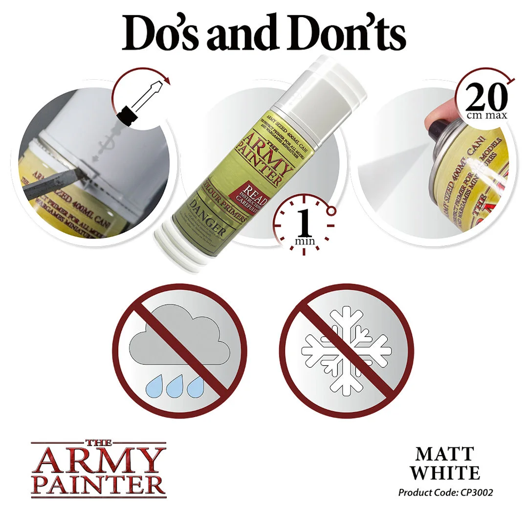 Primer spray av bra kvalitet, matt färg som ger ett klart och rent resultat på figurerna. 400 ml. Läs mer på www.thearmypainter.com